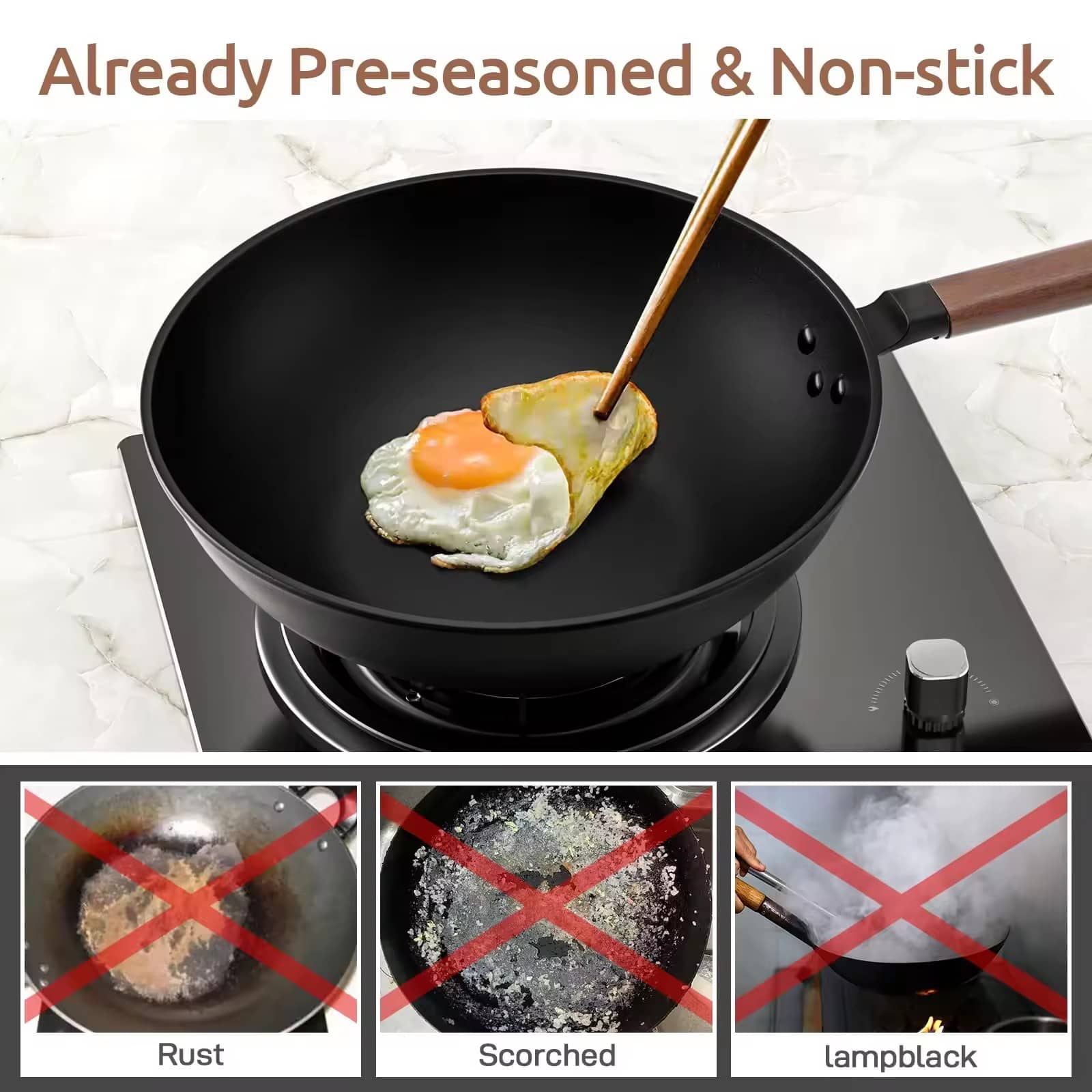 Přizpůsobená velikost loga Netoxická nepřilnavá pánev na smažení wok Wholesale